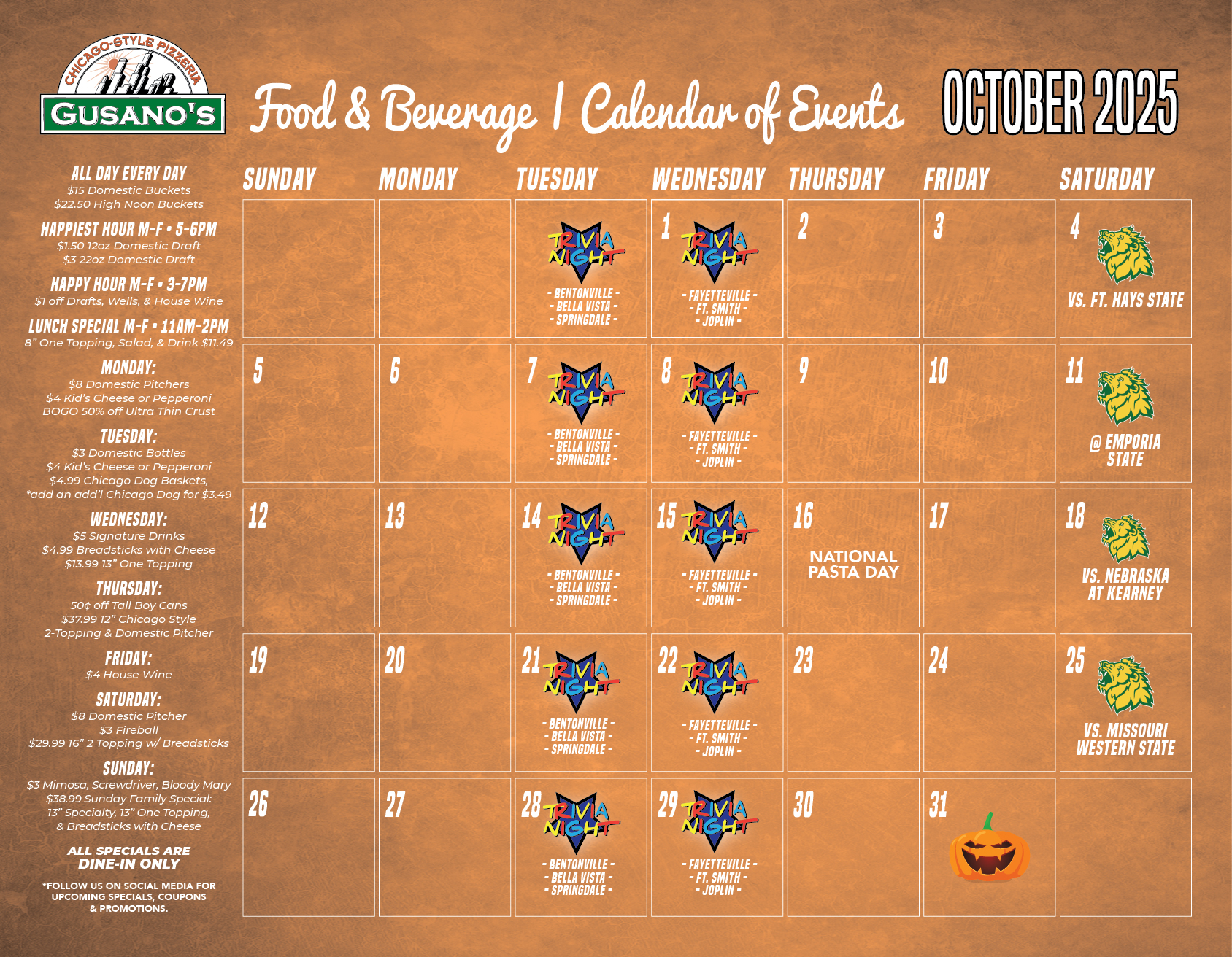 After growing the Gusano’s brand in Northwest Arkansas, a couple of guys from Joplin, MO brought up the idea to open a location in their hometown. After researching the Joplin area, it was a perfect fit for Gusano’s and the store was opened in 2009. With plenty of big screen TV’s, there’s always a great seat to watch the game. Located off 7th St. in East Joplin, our location has plenty of parking and a large patio to accommodate all your friends and family!